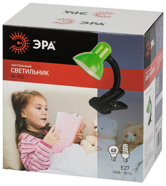 Настольный светильник ЭРА N-102-Е27-40W-GR на прищепке зелёный