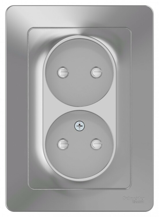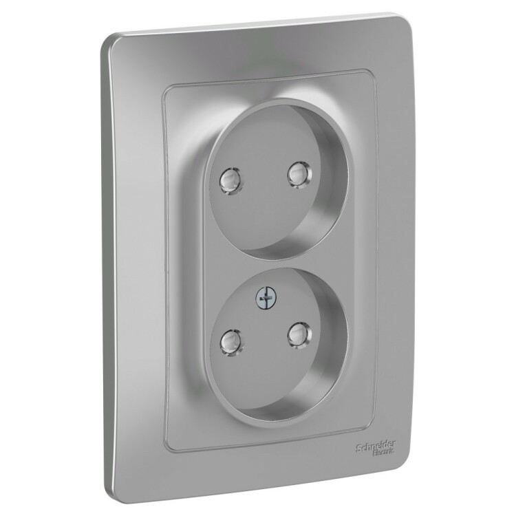 BLANCA С/У РОЗЕТКА двойная без заземления со шторк., 16А, 250В, АЛЮМИНИЙ