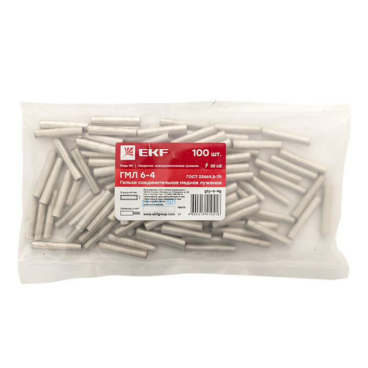 Гильза соединительная медная луженая ГМЛ 6-4 ГОСТ EKF PROxima