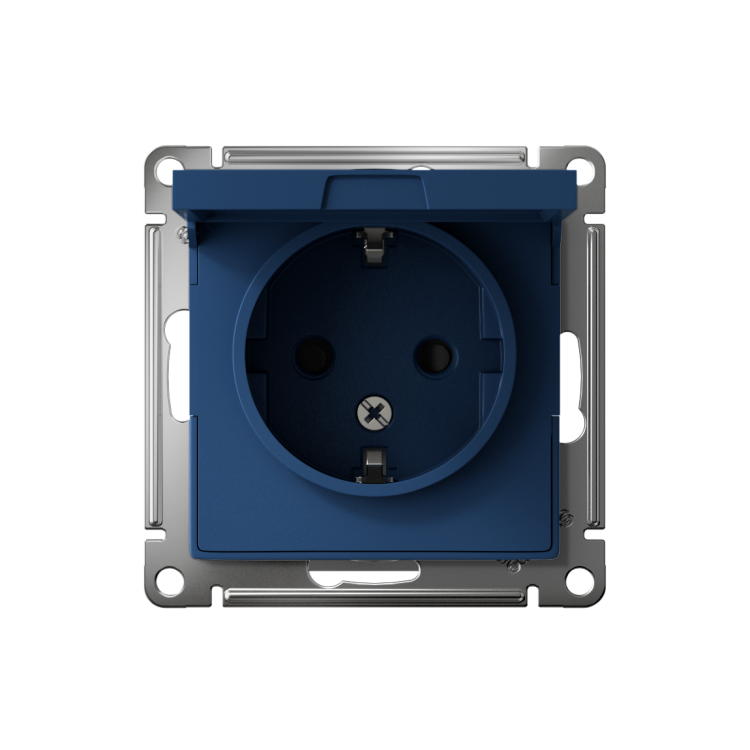 Розетка 2P+E с крышкой со шторками 16А аквамарин AtlasDesign