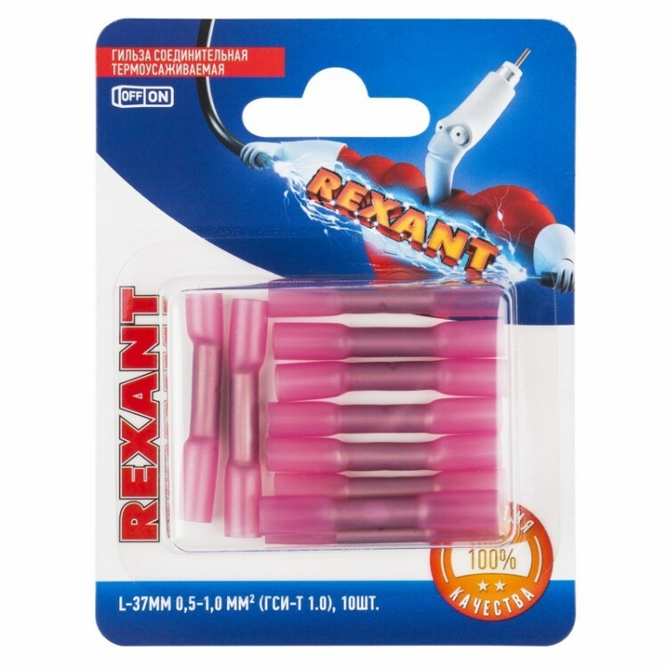 Соединительная гильза изолированная термоусаживаемая L-37 мм 0.5-1 мм² (ГСИ-т 1.0/ГСИ-т 0,5-1,0) красная, в упак. 10 шт. REXANT