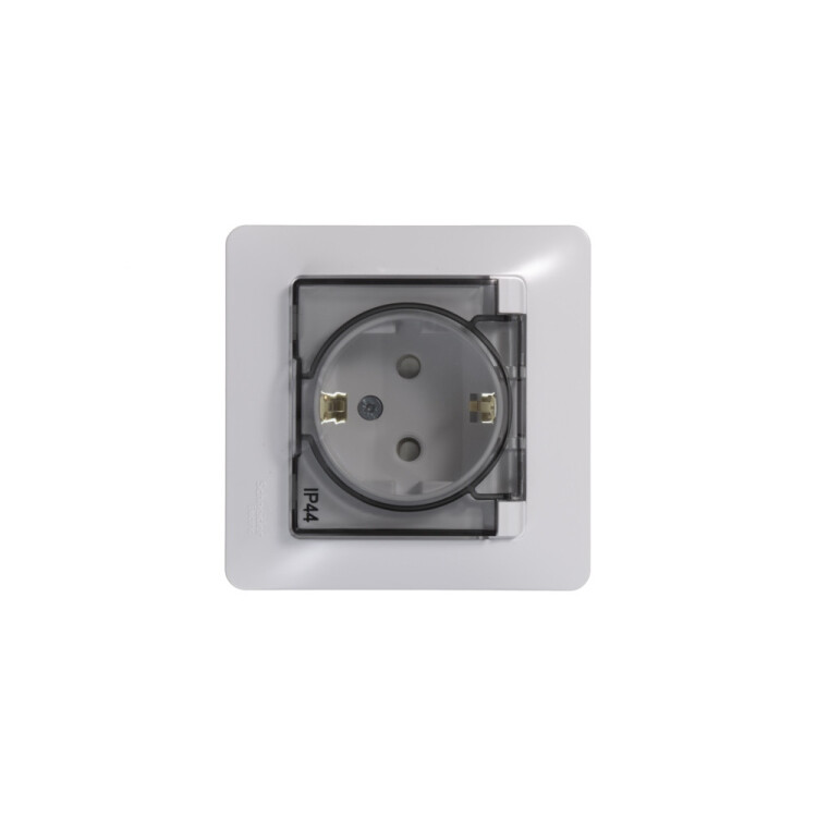 Розетка 2P+E 16А со шторками с крышкой IP44 винт.зажим в сборе белый Glossa