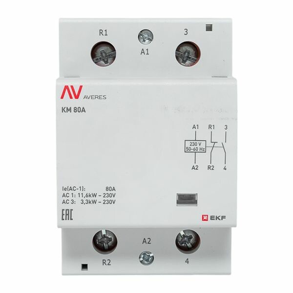 Контактор модульный КМ 80А 1NC+1NO 230VAC (3 мод.) AVERES EKF