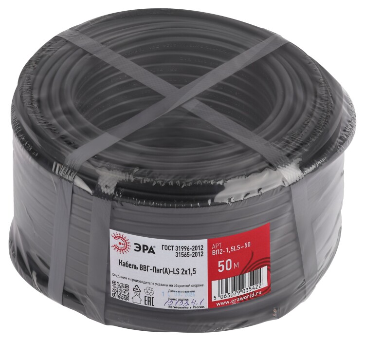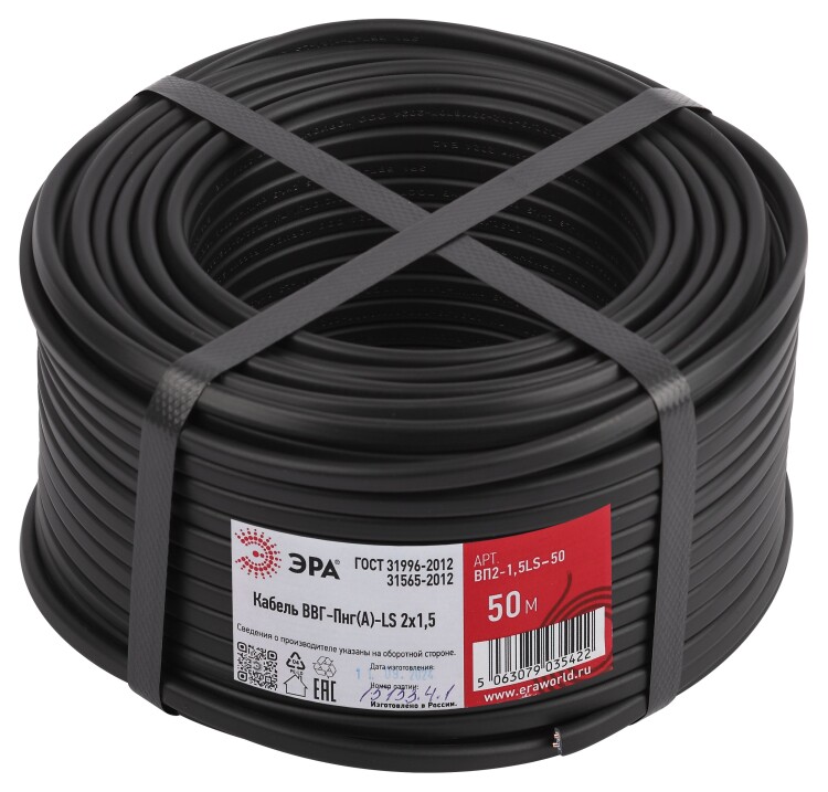 Кабель ЭРА ВВГ-Пнг(А)-LS 2х1,5 мм2 50м