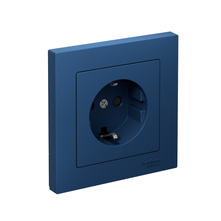 ATLASDESIGN РОЗЕТКА с заземлением со шторками, 16А, в сборе, быстрозажим. клем., АКВАМАРИН