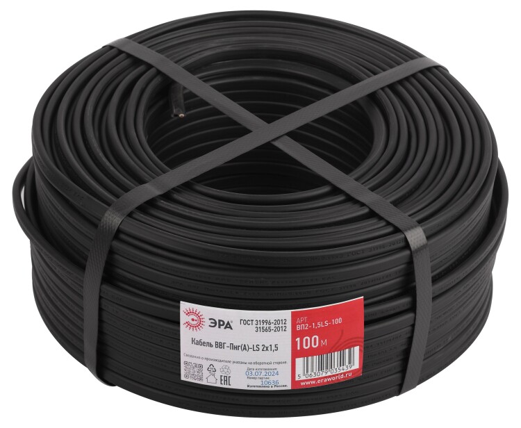 Кабель ЭРА ВВГ-Пнг(А)-LS 2х1,5 мм2 100м