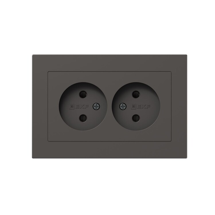 Механизм розетки двойной, 16А, без заземления, со шторками, с рамкой, мокко Эпика EKF