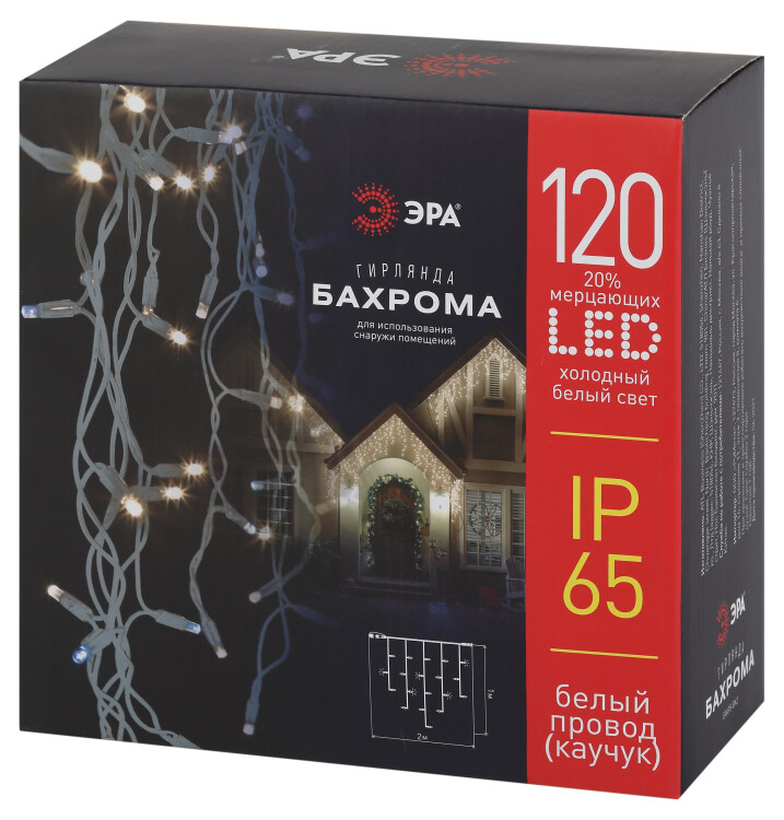 Гирлянда ЭРА ERAPS-BK2 светодиодная новогодняя бахрома 2x1 м холодный белый свет 120 LED