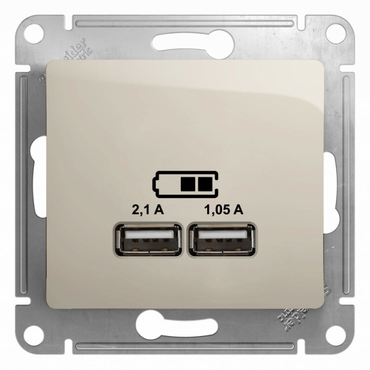 USB РОЗЕТКА, 5В/2100 мА, мех., МОЛОЧНЫЙ