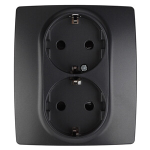 12-2104-05 ЭРА Розетка 2X2P+E Schuko со шторками, 16A-250В, IP20, Эра12, антрацит (6/60/1680)