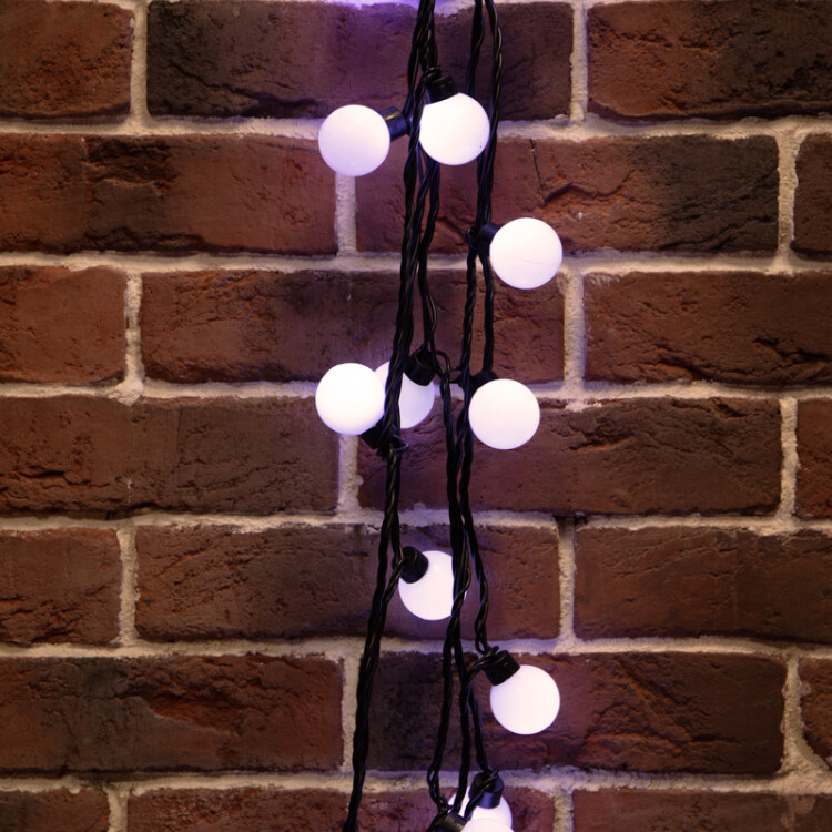 Гирлянда светодиодная Мультишарики O38мм 10м 40 LED БЕЛЫЙ черный ПВХ IP65 постоянное свечение 230В нужен блок 303-500 NEON-NIGHT