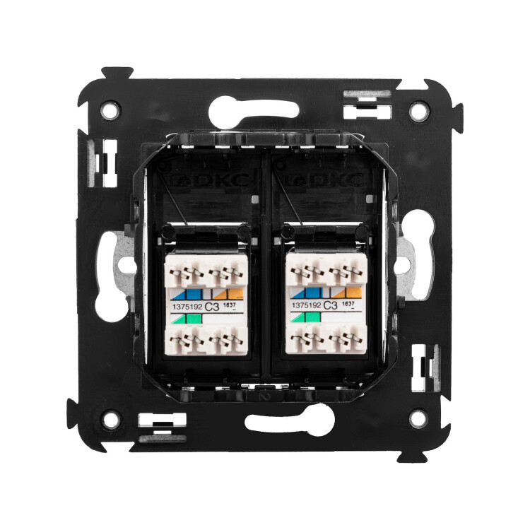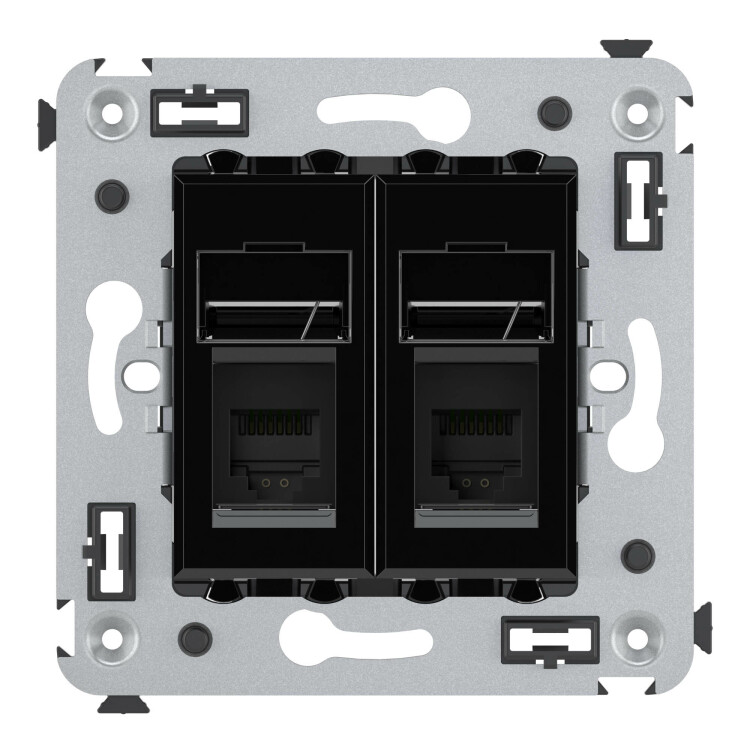 Телефонная розетка RJ-12 в стену двойная, "Avanti", "Черный квадрат"