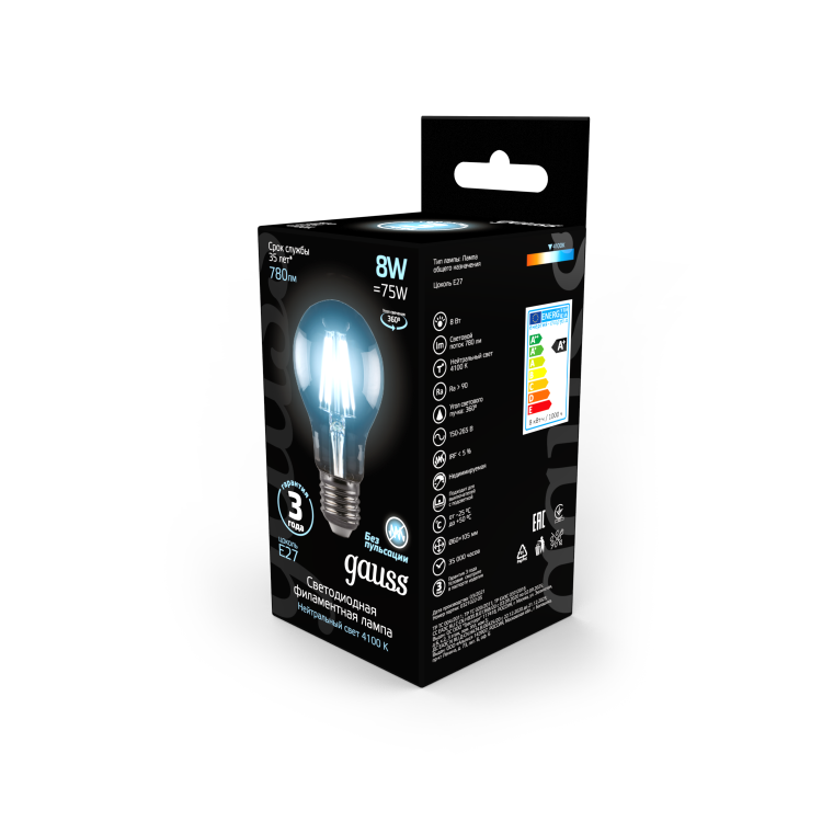 Лампа светодиодная 8 Вт 230В Е27 Filament А60, холодный 4100К