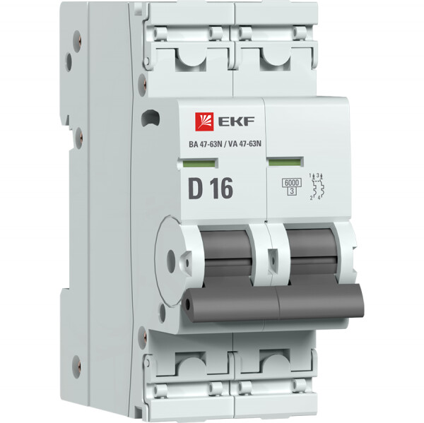 Автоматический выключатель 2P 16А (D) 6кА ВА 47-63N EKF PROxima