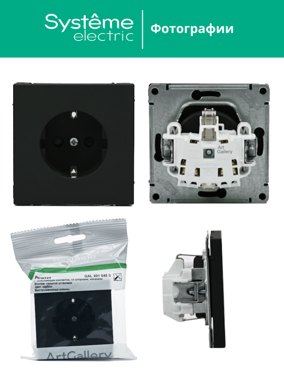 Розетка 2P+E со шторками 16А быстрозажим. клеммы карбон ArtGallery