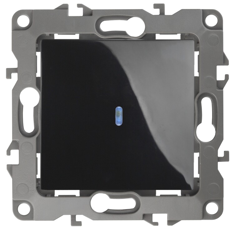 12-1102-06 ЭРА Выключатель с подсветкой, 10АХ-250В, IP20, Эра12, чёрный (10/100/3200)