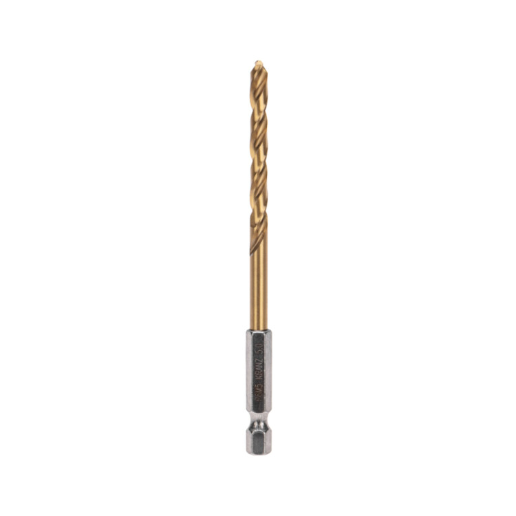 Сверло по металлу, 5мм, Р6М5, ТИТАН, шестигранный xвостовик (1 шт. в упаковке) DIN 338 KRANZ