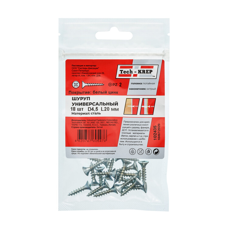 Саморез ШУц 4,5х20 потай. гол. (18 шт) - пакет