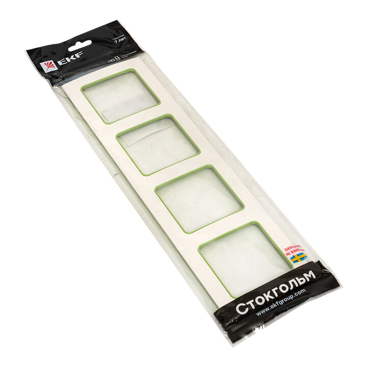 Стокгольм Рамка 4-местная белая с линией цвета зеленый EKF PROxima