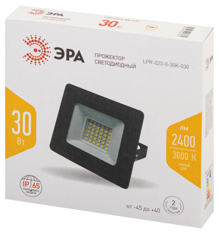 Прожектор светодиодный уличный ЭРА LPR-023-0-30K-030 30Вт 3000K 2400Лм IP65
