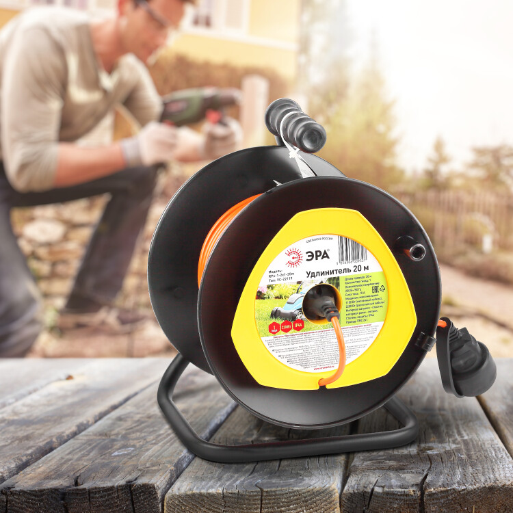 Удлинитель силовой ЭРА RPx-1-2x1-20m для газонокосилки без заземления 1 розетка 20м ПВС 2х1мм2