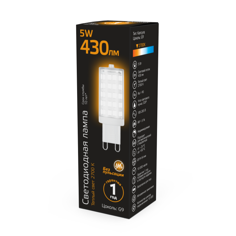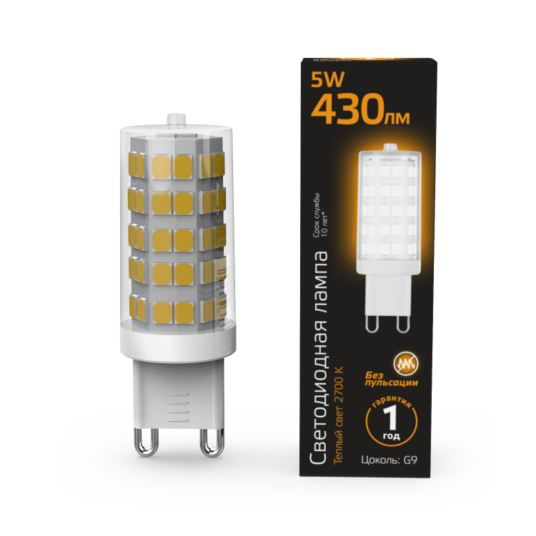 Лампа светодиодная 5 Вт 185-265В G9 керамика 2700K тёплый