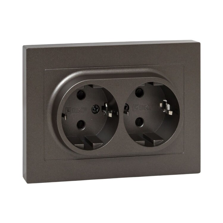 Механизм розетки двойной, 16А, с заземлением, со шторками, с рамкой, мокко Эпика EKF
