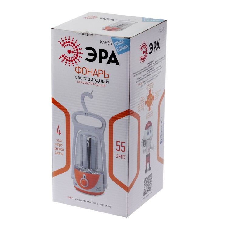 Фонарь кемпинговый светодиодный ЭРА KA55S аккумуляторный с диммером и складным крючком яркий светильник бело-оранжевый