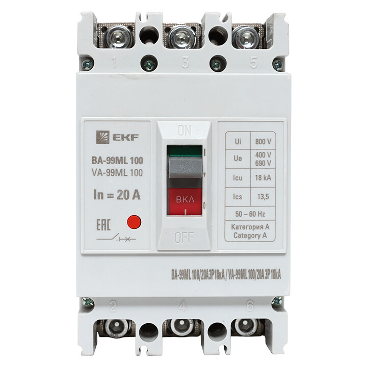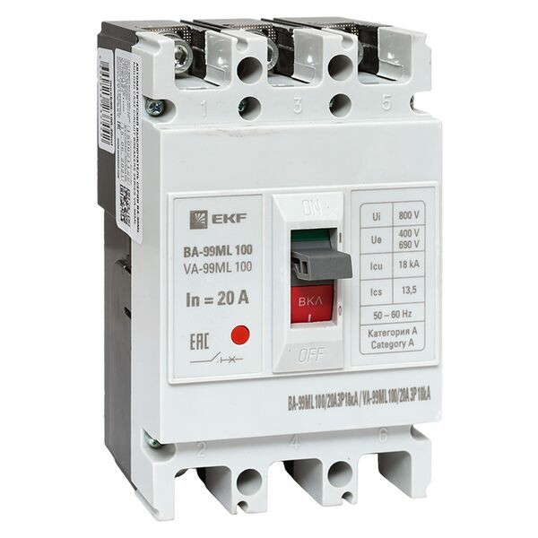 Автоматический выключатель ВА-99МL 100/20А 3P 18кА EKF Basic