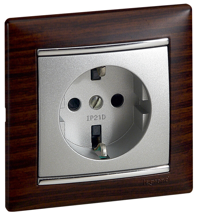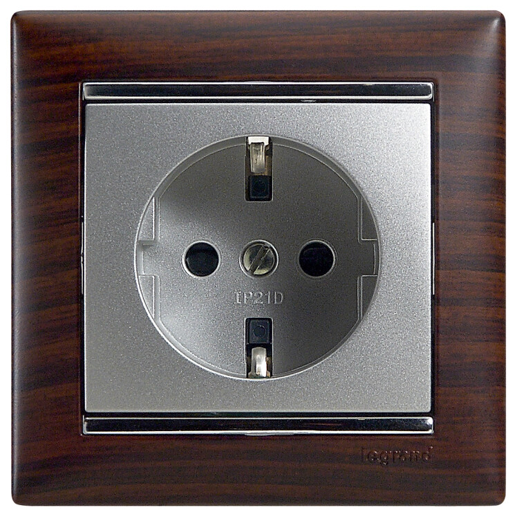 Розетка с заземлением - Legrand Valena - со шторками 16А 250В безвинтовые зажимы - алюминий