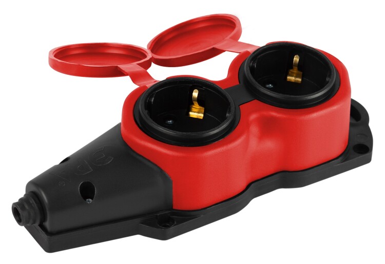 Колодка ЭРА KX-2e-RED-IP44 каучуковая с заземлением 2 розетки 16A IP44 красная