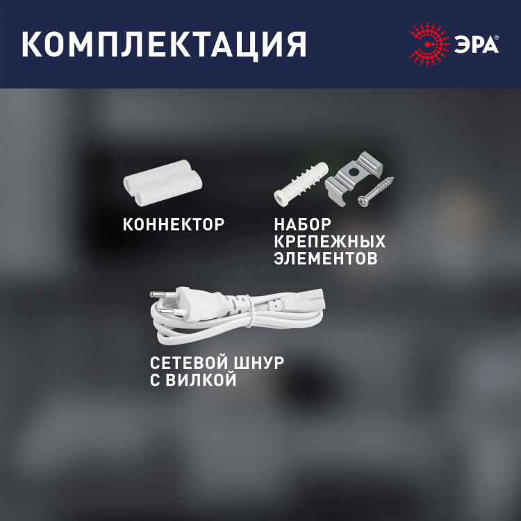 Линейный светодиодный светильник ЭРА LLED-04-0-40K-104 4Вт 4000K L300мм с сетевым шнуром