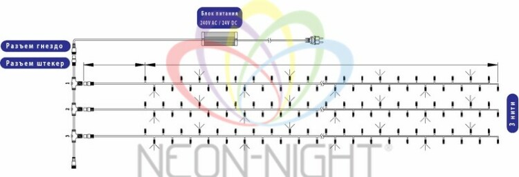 Гирлянда LED ClipLight 24V, 3 нити по 10 метров, цвет диодов Мульти