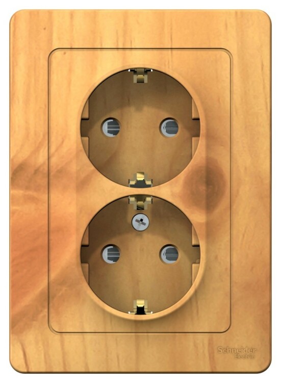 BLANCA С/У РОЗЕТКА двойная с заземлением со шторками, 16А, 250В, ЯСЕНЬ