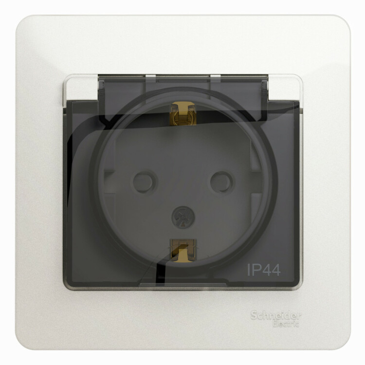 РОЗЕТКА з/к со шт кр, в сб,IP44, ПЕРЛАМ.