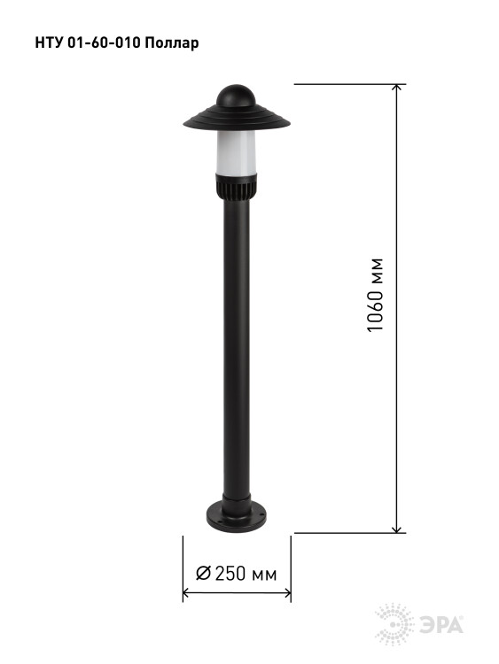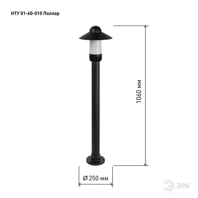 Садово-парковый светильник ЭРА НТУ 01-60-010 Поллар напольный черный IP54 Е27 max60Вт h1060мм