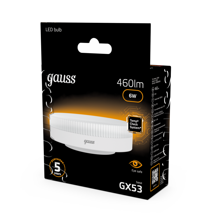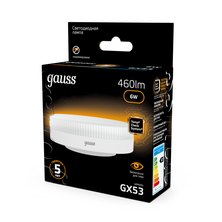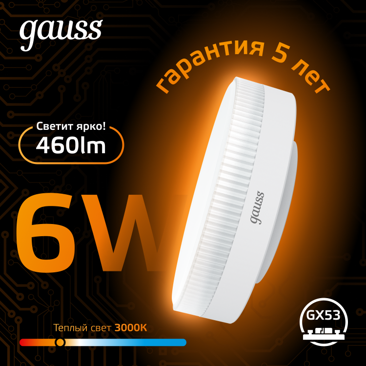 Лампа светодиодная 6 Вт GX53 2700К таблетка матовая, тонкий корпус, тёплый белый