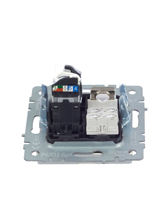 Розетка двойная RJ11+RJ45 кат.5E РК/Т12-БрА алюминий BRITE