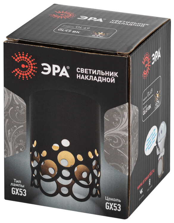 Светильник настенно-потолочный спот ЭРА OL49 BK GX53 IP20 черный