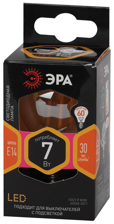 Лампочка светодиодная ЭРА F-LED P45-7W-827-E14 gold E14 / Е14 7Вт филамент шар золотистый теплый белый свет
