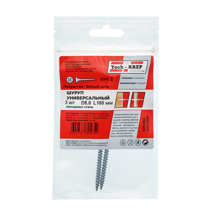 Саморез ШУц 5,0х100 потай. гол. (3 шт) - пакет
