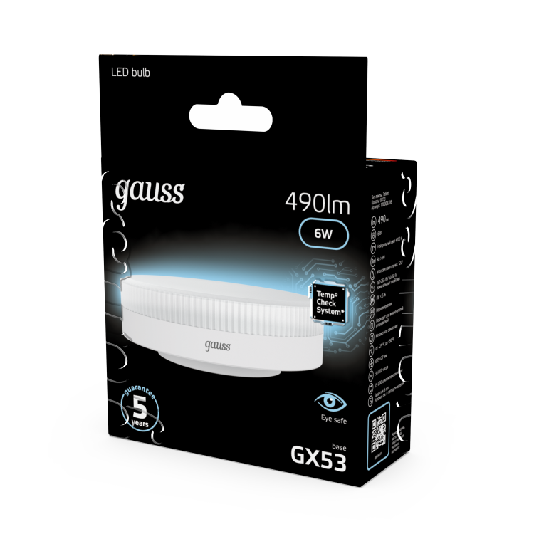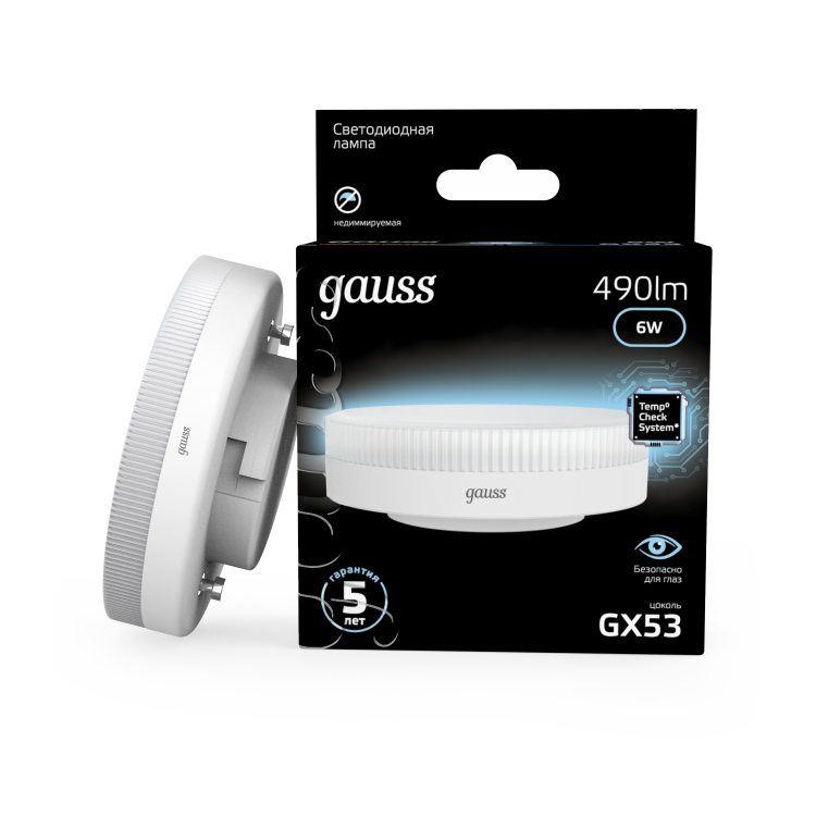 Лампа светодиодная 6 Вт GX53 4100К таблетка матовая, тонкий корпус, белый