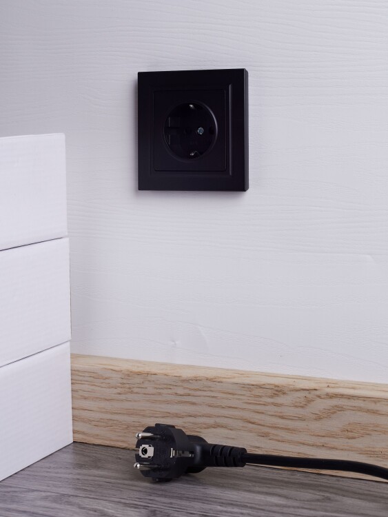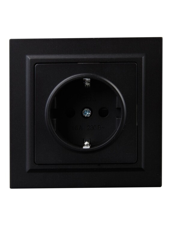 Розетка 2P+E с защитными шторками 16А в сборе РСР14-1-0-БрЧ черный BRITE