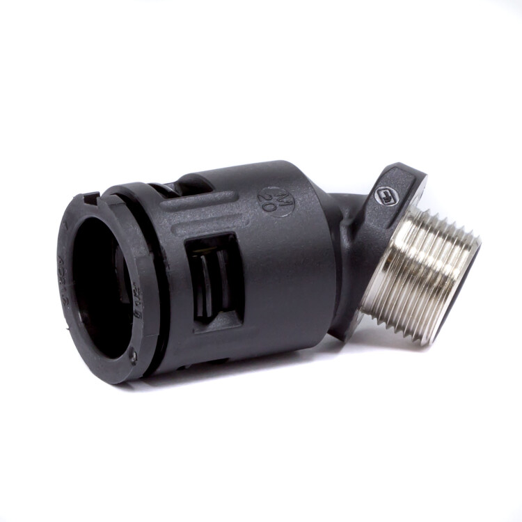 Муфта 45 грд. труба-коробка с металлической резьбой DN 23 мм, М25х1,5, полиамид, цвет черный
