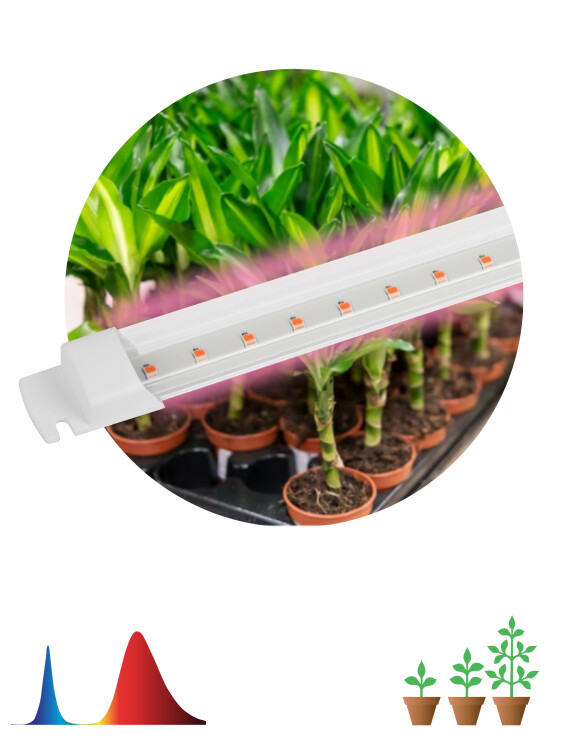 Светильник для растений, фитолампа светодиодная линейная ЭРА FITO-10W-Т5-RB-Slim красно-синего спектра 10 Вт Т5