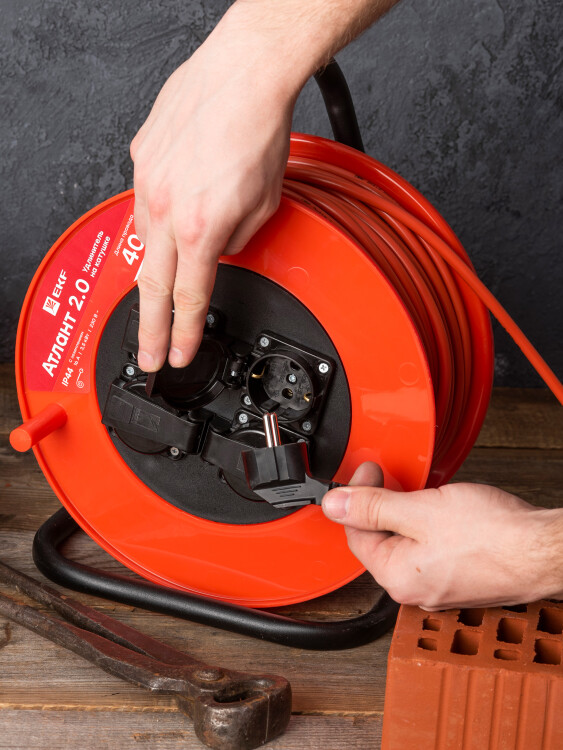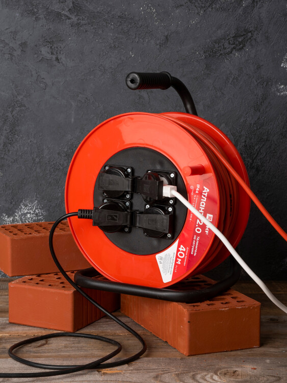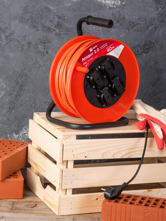 Удлинитель на катушке "Атлант 2.0" 4 гнезда 40м с заземлением КГ 3*1,5 16А/3,5кВт IP44 PROxima EKF