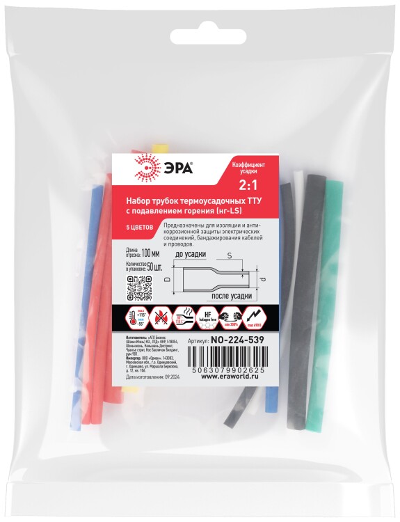Термоусадочная трубка ЭРА NO-224-539 ТТУ нг-LS 2:1 набор №5: 5 цветов, 10 шт. (L= 100мм)