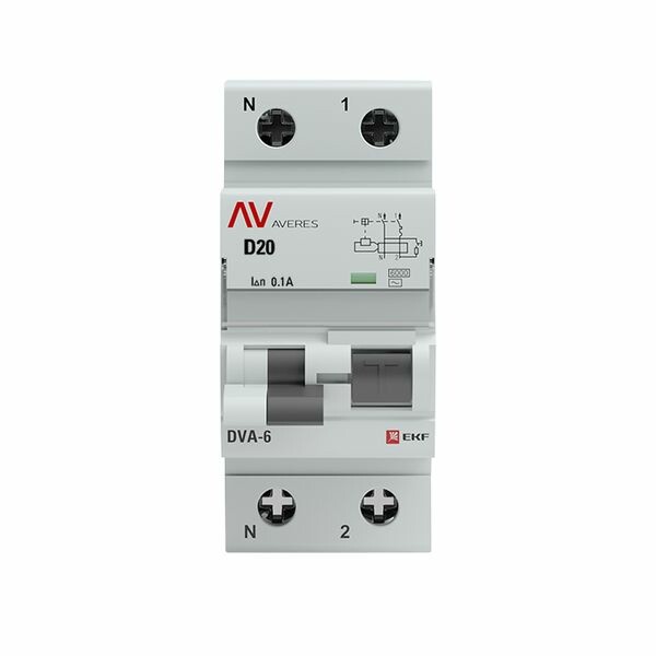 Автомат. выкл. дифф. тока 1-пол.+N 20А 100мА тип AC 6кА хар-ка D серия DVA-6 1P+N 20А (D) 100мА (AC) 6кА EKF AVERES
