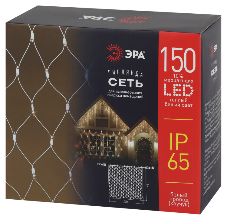 Гирлянда ЭРА ERAPS-SK2 светодиодная новогодняя сеть 1,5x2 м тёплый белый свет 150 LED