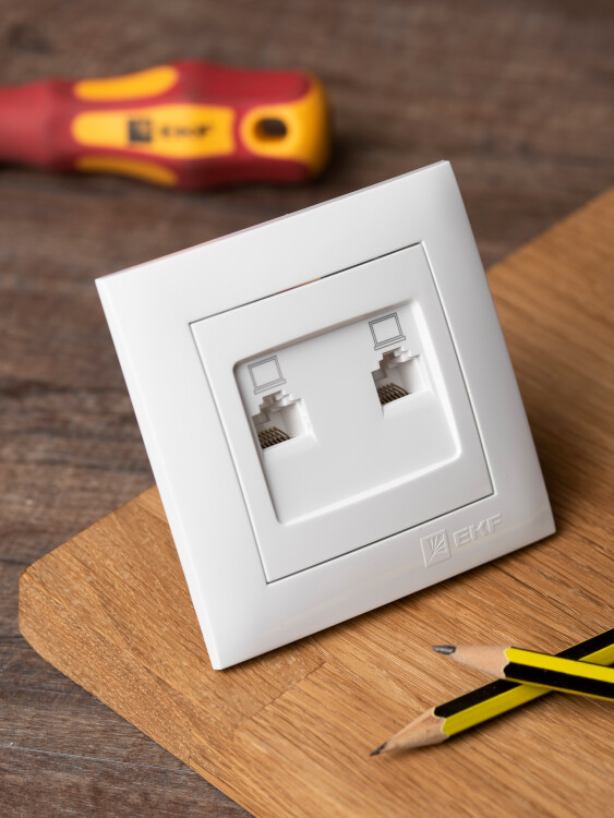 Валенсия розетка компьютерная RJ-45 2-местная белая EKF PROxima